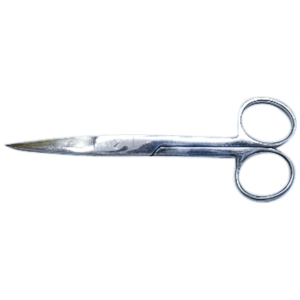 - An instrument compromised of two pivoted blades, usually provided with finger and thumb holes in the handles and is operated by closing the blades on the material to be cut. The distal end of the blades may be different shapes. Not intended for surgical use.