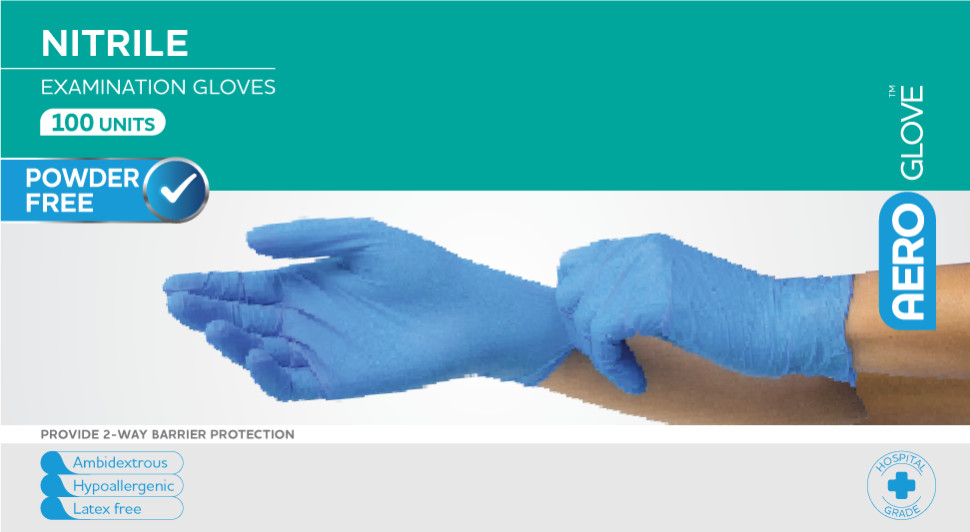 AEROGLOVE Nitrile Powder‑Free Gloves deliver dependable barrier protection for clinical, workplace and everyday tasks where hygiene and dexterity are essential. Constructed from durable nitrile, they balance flexibility with puncture strength to help protect hands during routine examinations, cleaning down equipment and handling wound dressings. An anatomically shaped, ambidextrous design supports a natural feel on either hand, enabling quick donning and confident movement without unnecessary bulk. The powder‑free finish supports clean handling by reducing surface residue on skin, instruments and surfaces, while a textured surface is designed to provide reliable grip in both wet and dry conditions. Latex‑free construction suits users who are sensitive to natural rubber latex, broadening suitability across healthcare, community and personal use. A blue colour option assists fast visual checks so splits can be identified and gloves replaced promptly to maintain good practice.