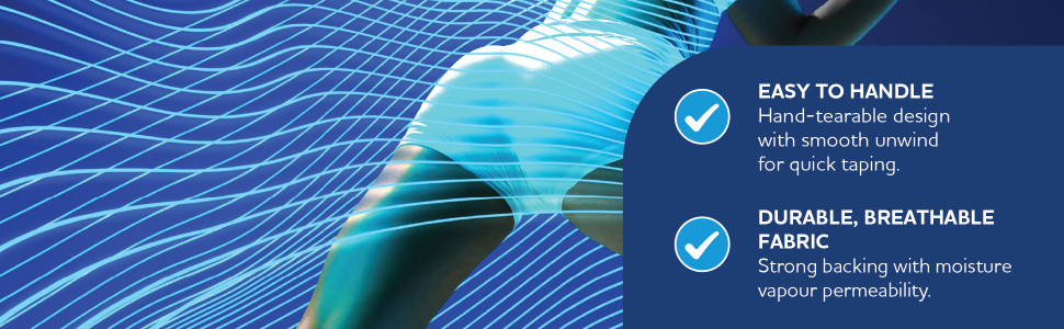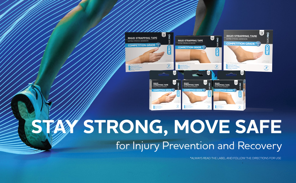 AeroTape Pro Rigid Strapping Tape is both water resistant and sweat resistant, so it continues to perform in humid weather, under strapping socks, and during prolongued sessions. The high-strength fabric backing is durable yet breathable, allowing moisture vapour to escape while maintaining the firm mechanical support that rigid tapes are known for. This balance of strength and breathability supports reliable performance without feeling overly bulky.