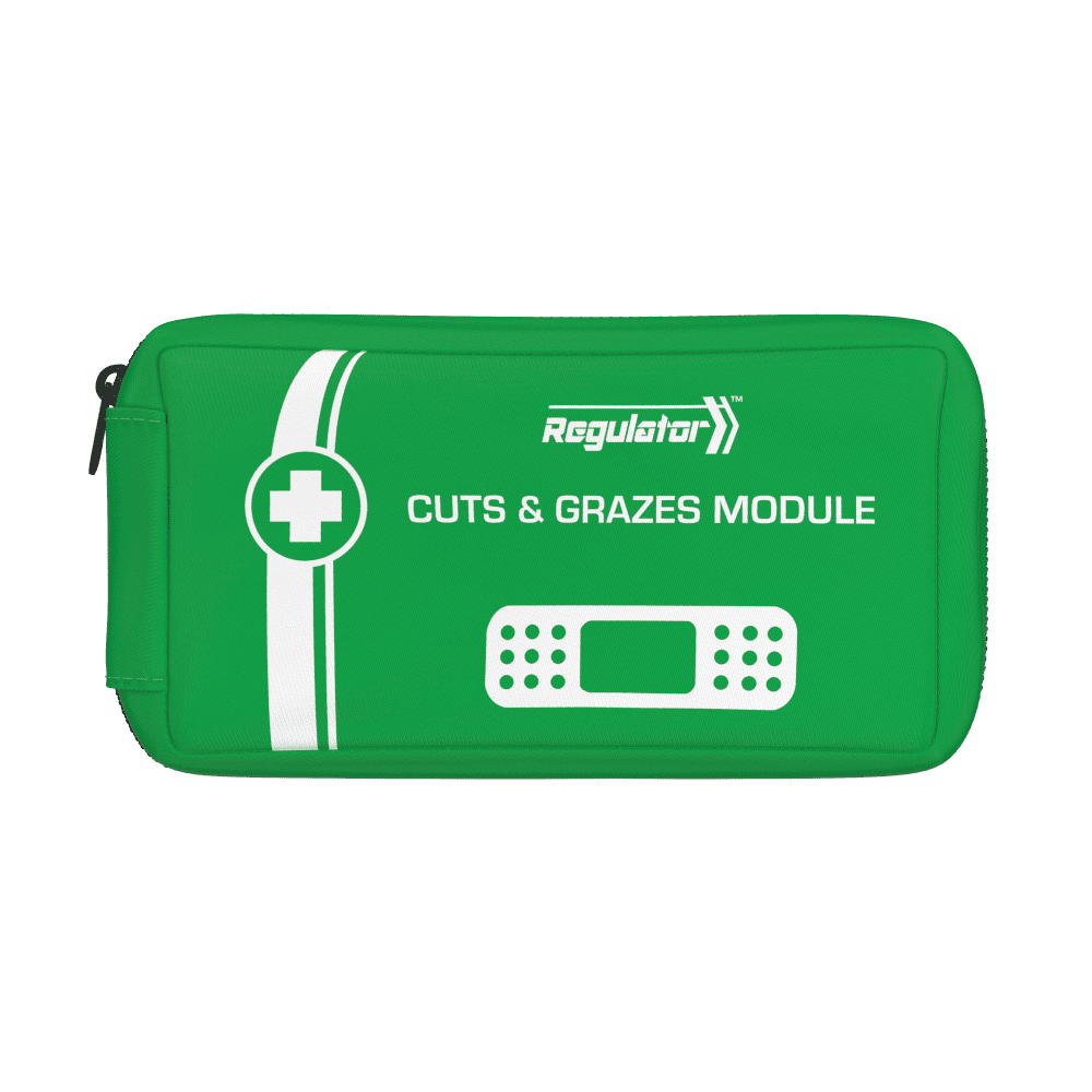 This cuts and grazes module focuses specifically on minor bleeding and surface wounds, providing a clearly identifiable green soft case dedicated to everyday injuries so users can reach the right first aid items with minimal searching.