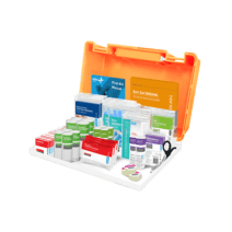 The AeroKit™ with Surefill™ British Standard Workplace Large First Aid Kit includes a robust case and is specifically designed for the food and beverage industry, as well as workplaces. It is capable of covering 100 employees or more in a low-risk area or 25 employees or more in a higher-risk area.