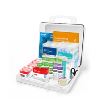BS 8599-1:2019 provides advice on the amount and size of the first aid kits required for different working environments; based on the number of employees and risk category