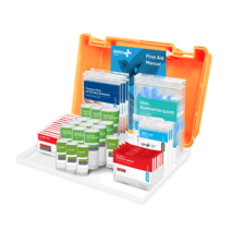 The AeroKit™ HSE 20 Person Food and Beverage Kit comes in a robust case and offers easy refills with our Surefill™ solution. It has been produced to support the food and beverage industry, including catering and hospitality. As well as offering optimum support for catering and hospitality staff, it is also compliant with BS 8599-1:2019 workplace first aid kits. Manufactured with the food and beverage industry in mind, this kit is suitable for modern day kitchen/food preparation, or within a manufacturing facility. The AeroKit™ HSE 20 Person Food and Beverage Kit includes a range of Aero-branded products that offer excellent quality. From AeroWipe™ to AeroPlast™, each product ensures exceptional support for users. Thanks to its accompanying Surefill™ solution, it also affords greater support for those responsible for sourcing new first aid equipment. Its economic nature means that all first aid consumables are replaced and replenished in one easy step. As there is no longer a need to purchase another bag or case for the first aid kit, it also reduces the need to produce unnecessary waste. That's why the robust case you receive is manufactured to last. Additionally, its plastic pouches and any packaging are reused or recycled. The AeroKit™ HSE 20 Person Food and Beverage Kit is suitable for covering 20 people working in low-risk areas.