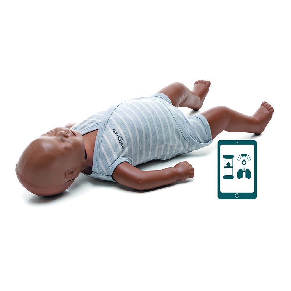 – Supports back blow training for relief of foreign-body airway obstruction with audible crying features.