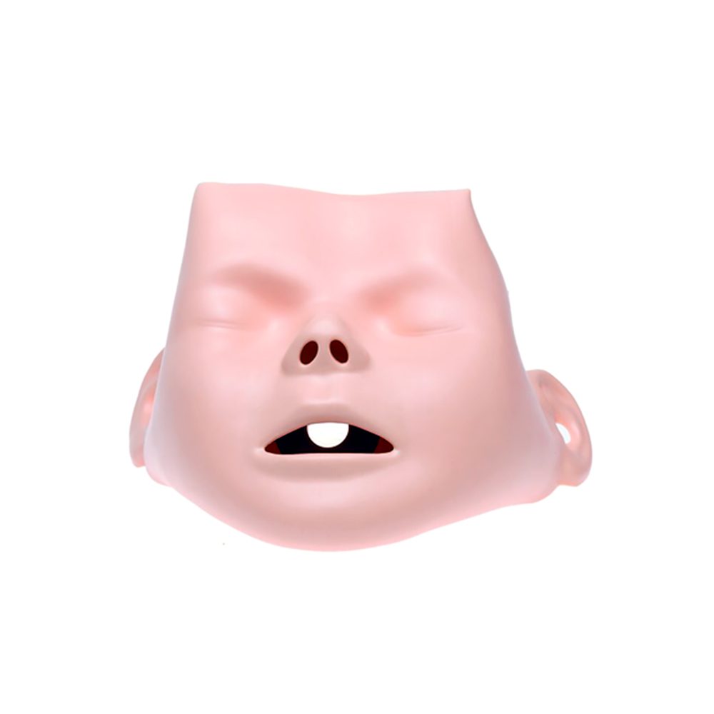 Removable manikin faces can be used on an one-per-student basis, or continuously with normal disinfection between students. These manikin face masks are realistic and each have a coupling attached to the back of the face skin that connects to the manikin's airway. This face mask fits both the Resusci Junior and Little Junior manikins.
